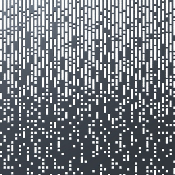 Tôle perforée progressive Arnem Catura s’élabore par une transition verticale contrastée, les trous carrés devenant des rectangles filants.