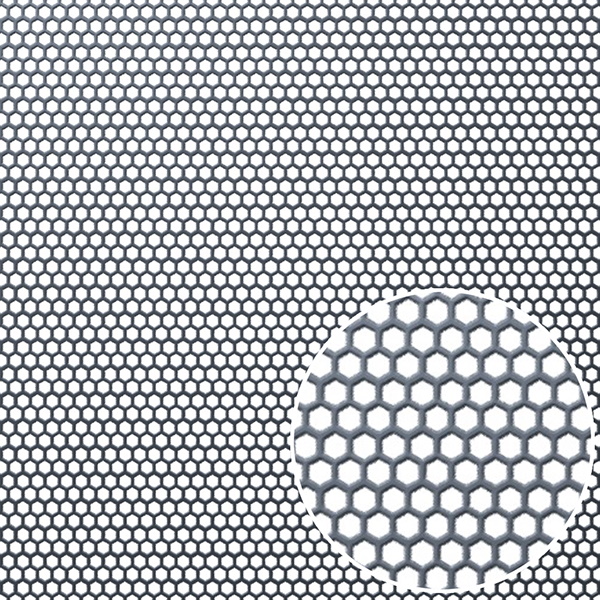 Grille ventilation Liboma en trous hexagonaux de 20 mm avec une disposition en quinconce formant un nid d’abeilles régulier.